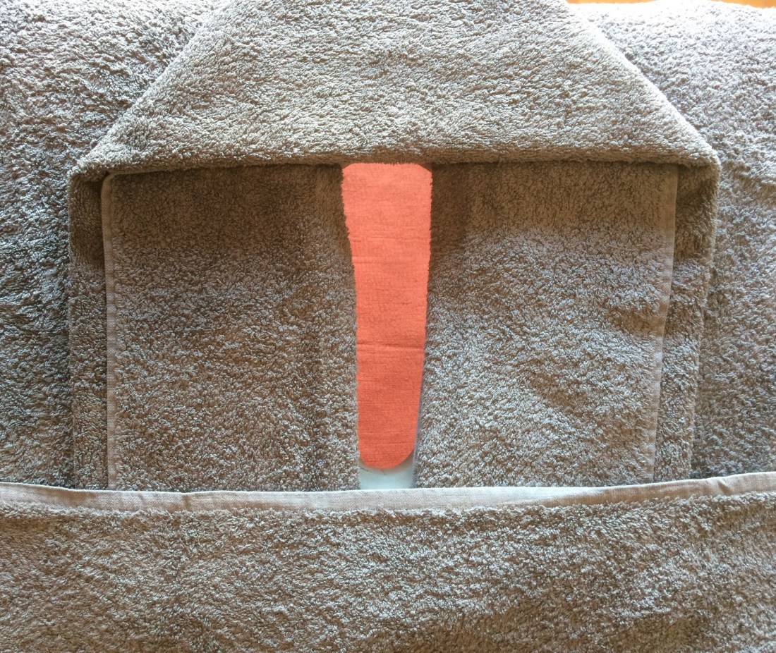IMG_1744Começar por colocar duas toalhas pequenas (de rosto) . Uma de cada lado da abertura da face.