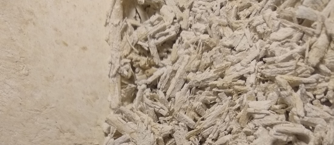 O cânhamo, resultado desse cavar da parede, pode voltar para a mistura e não se desperdiça material.